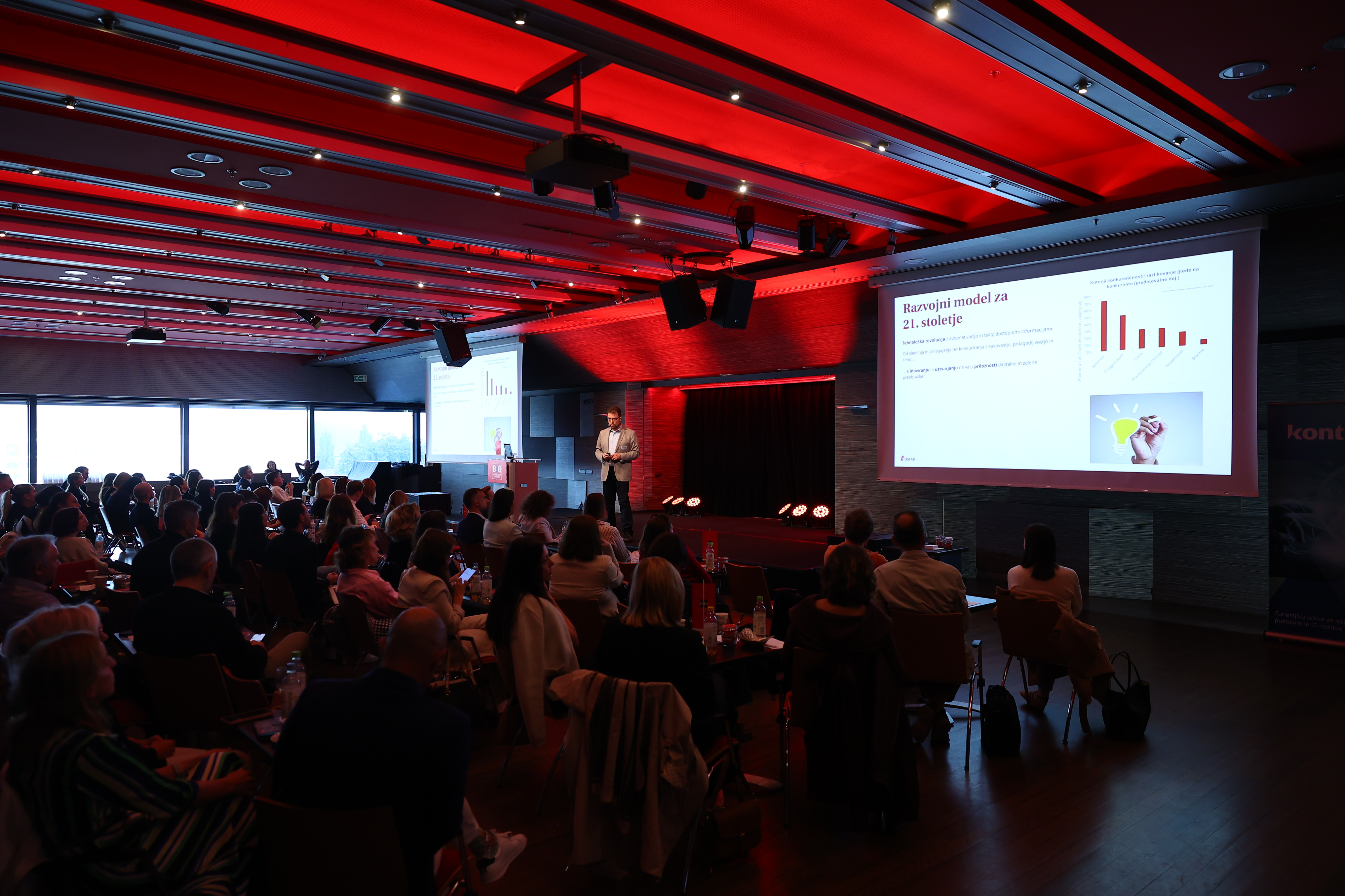 Kako preiti v inovacijsko podprto rast, ki se bo odrazila na višji dodani vrednosti na zaposlenega, je skozi ugotovitve raziskave Kakovost življenja v Slovenije predstavil Peter Wostner (Urad za makroekonomske analize in razvoj). Podaril je, da morajo podjetja celoten inovacijski ekosistem po kakovosti dvigniti na raven velikih inovatork, ne pa vlagati zgolj v področja, na katerih smo trenutno slabši. Če želim odskočiti naprej, je nujna večja agilnost, podjetja se morajo s pomočjo inovacij preobraziti iz dobaviteljev v podjetja, ki razvijajo nove produkte in ustvarjajo višjo dodano vrednost, na področju kadrov pa moramo aktivirati vse zaposlene, avtomatizirati vse, kar je mogoče ter spremeniti sistem izobraževanja, ki bo ustvaril radovedne in inovativne zaposlene.